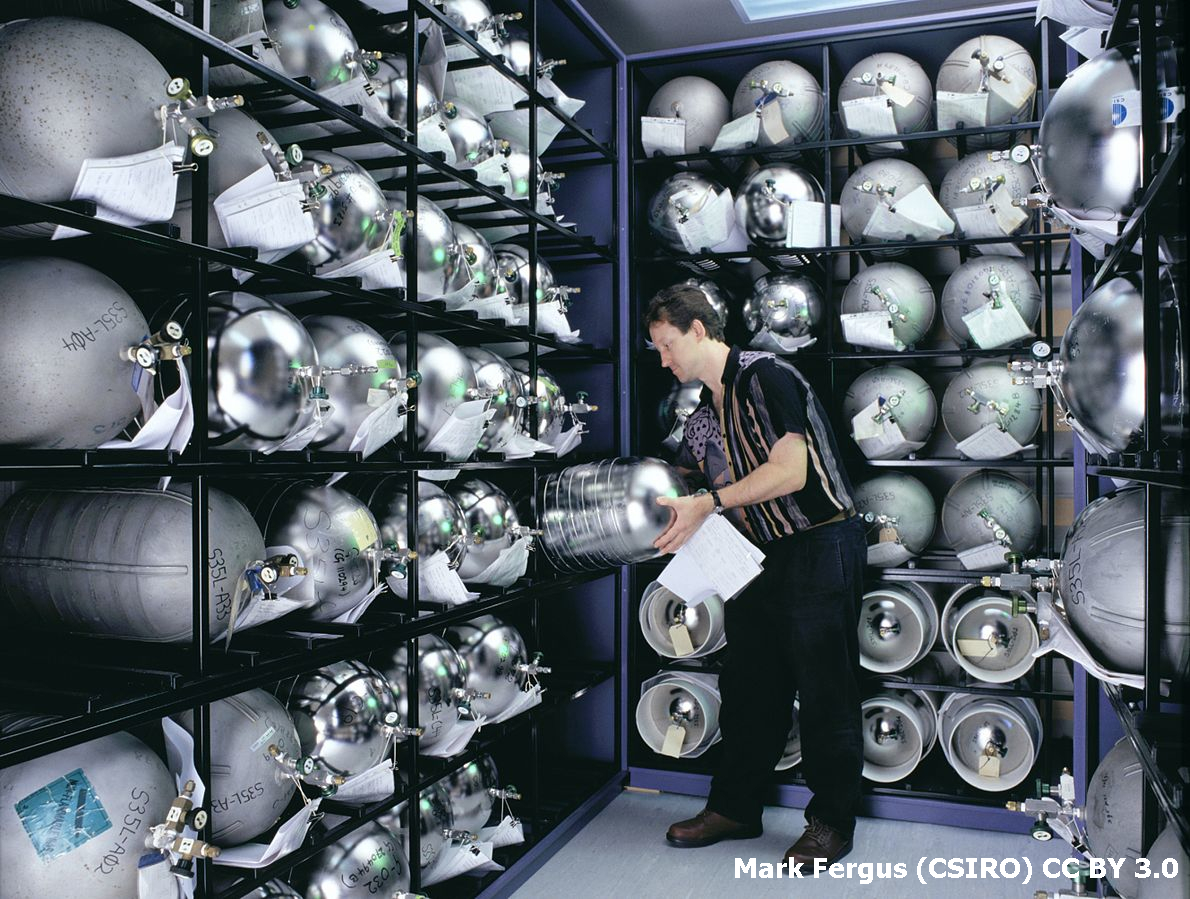 Znaczna część naszej wiedzy o szczegółach widma absorpcyjnego CO2 i wielu innych gazów cieplarnianych pochodzi z programów badawczych zainicjowanych w czasach zimnej wojny i wyścigu zbrojeń między USA a ZSRR. Częściowo były to badania o charakterze podstawowym, ale celem niektórych było rozwiązanie problemów takich jak np. naprowadzanie pocisków przeciwlotniczych, wykrywanie startów międzykontynentalnych rakiet balistycznych czy projektowanie wysokoenergetycznych laserów zdolnych do ich niszczenia.