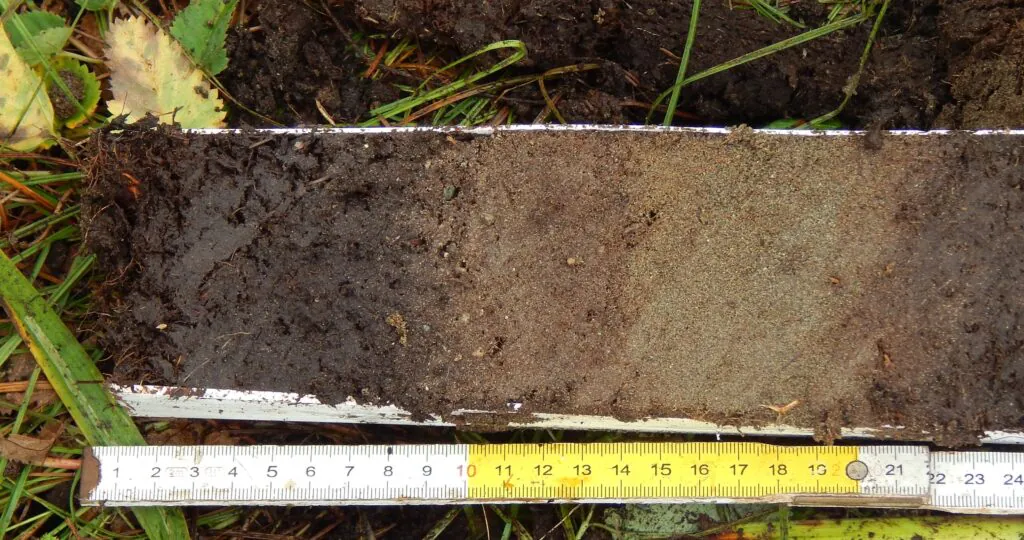 Co ważne, z tego przykładowego torfowiska jesteśmy w stanie pobrać wiele rdzeni – na przykład w profilu prostopadłym do wybrzeża. Pozwala to nam zobaczyć, że np. blisko brzegu istnieje 10 warstw, a daleko od brzegu są już tylko dwie. Na tej podstawie możemy wnioskować, przynajmniej w jakiś uproszczony sposób, jak duże były dane zjawiska, jak daleko w głąb sięgały zalewy.