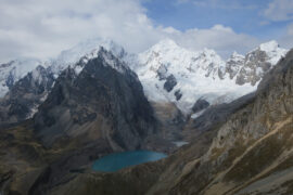 Rysunek 2: Lodowiec Zongo spływa spod szczytu Huayna Potosi (6088 m n.p.m.). Autor: Jakub Małecki.