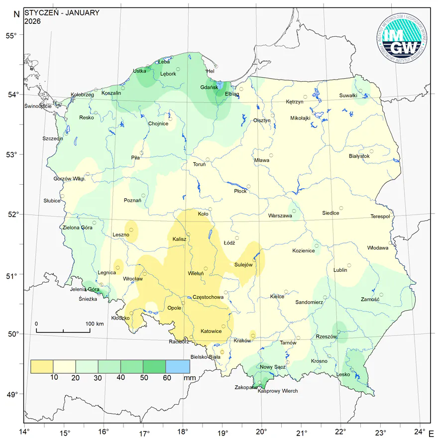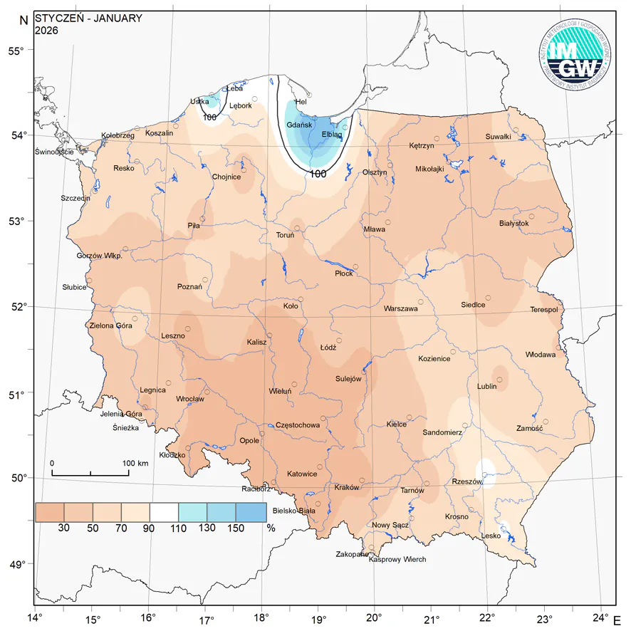 Według klasyfikacji rangowej prowadzonej od 1951 roku, tegoroczny styczeń uplasował się na 71. pozycji, stając się jednocześnie najsuchszym styczniem w XXI wieku (IMGW-PIB, 2026b).