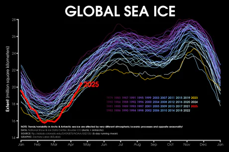 DEZINFORMACJA: To jest 2007 rok, kiedy [w Arktyce] było jedno z takich [głębokich] minimów, to tu na Antarktydzie, było maksimum. Przyroda sobie wyrównuje. Jeśli u nas lodu nie ma, to tam jest go więcej.
