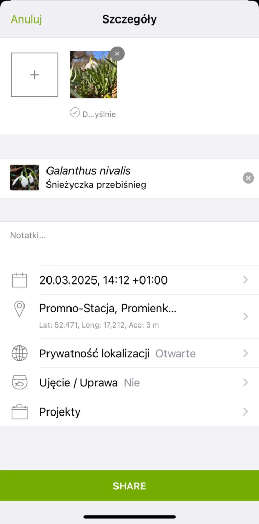 Największą zaletą iNaturalist jest to, że nie musisz mieć specjalistycznej wiedzy. Wystarczy, że zrobisz zdjęcie, a jeśli chodzi o ptaki, możesz także nagrać ich śpiew. Następnie przesyłasz pliki za pomocą aplikacji mobilnej lub strony internetowej. Kolejnym krokiem jest podanie podstawowych informacji: miejsca i daty obserwacji.