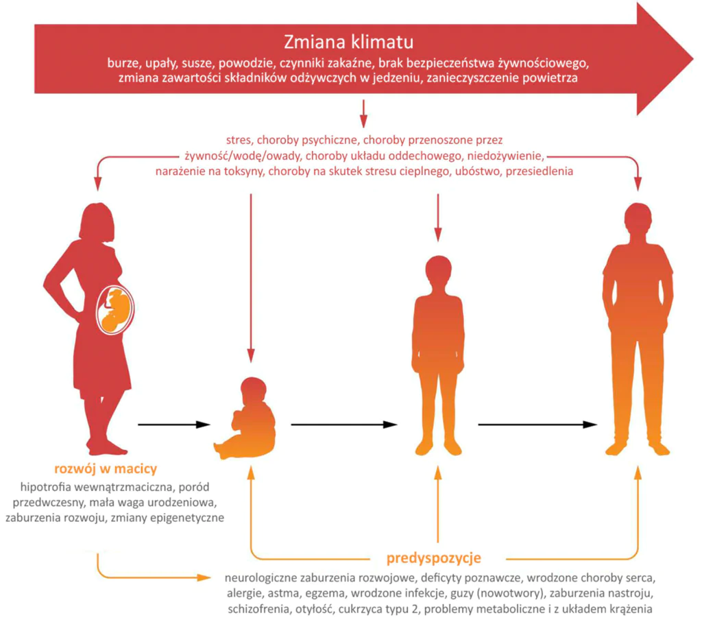 Wpływ długotrwałego stresu jest wiązany m.in. z większym ryzykiem zachorowania na choroby układu krążenia w starszym wieku. Problemy ze zdrowiem psychicznym w dzieciństwie mogą rozciągnąć się także na późniejszy okres życia. Patrząc na statystyki, według których Polska znajduje się na drugim miejscu w Europie pod względem samobójstw osób nieletnich, są to kwestie, których nie można bagatelizować. Tym bardziej, że młodzież w sondażach wyraźnie pokazuje, że stan klimatu bardzo ją niepokoi. Narastający kryzys przyrodniczo-klimatyczny powoduje utratę poczucia bezpieczeństwa, podobnie jak częstsze konflikty, migracje czy zła sytuacja ekonomiczna państwa, do których wzrost temperatury Ziemi może się przyczyniać. Brak stabilności, zarówno w najbliższym otoczeniu, np. na skutek katastrof naturalnych, jak i w społeczeństwie, niekorzystnie wpływa na prawidłowy rozwój dzieci.