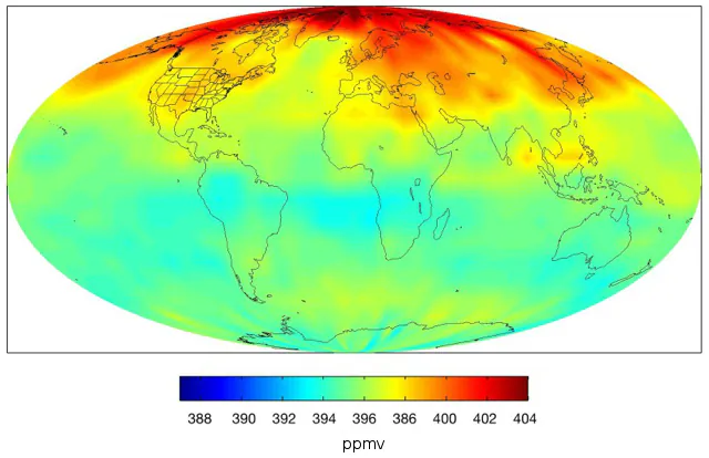Wzrost koncentracji dwutlenku węgla jest mierzony bezpośrednio od 1959 roku, dane historyczne na temat jego stężenia pochodzą z analizy rdzeni lodowych. Analizą, jaka część emitowanego dwutlenku węgla pozostaje w powietrzu, zajmuje się wiele zespołów naukowych z całego świata. Na przykład w pracy Le Quere i inni (2009) przeanalizowano dane dla lat 1959-2008 (czyli w okresie, kiedy dokonywano już bezpośrednich pomiary koncentracji CO2 w atmosferze).