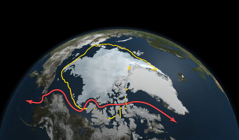 Pokrywa lodowa Arktyki powiększa swoją powierzchnię zimą. Latem lód topnieje, a jego powierzchnia osiąga we wrześniu minimum. W ostatnich latach obserwujemy coraz szybszy zanik letniej pokrywy lodowej.