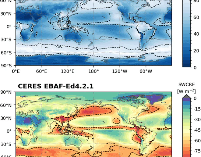 Wykresy zmian strumieni dwutlenku węgla pomiędzy atmosferą i lądową biosferą oraz pomiędzy atmosferą i wszechoceanem od roku 1959.