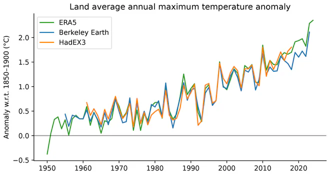 Anomalie miesięczne średniej temperatury globalnej od 1979 roku, względem okresu przedindustrialnego.