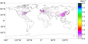Uśredniony w skali globu strumień ciepła przemysłowego (a ściślej całego ciepła antropogenicznego) wynosi ok. 0,03 W/m2. Dla porównania, efekt związany ze zmianą zawartości gazów cieplarnianych wynosi 3,0 W/m2, czyli 100 razy więcej.