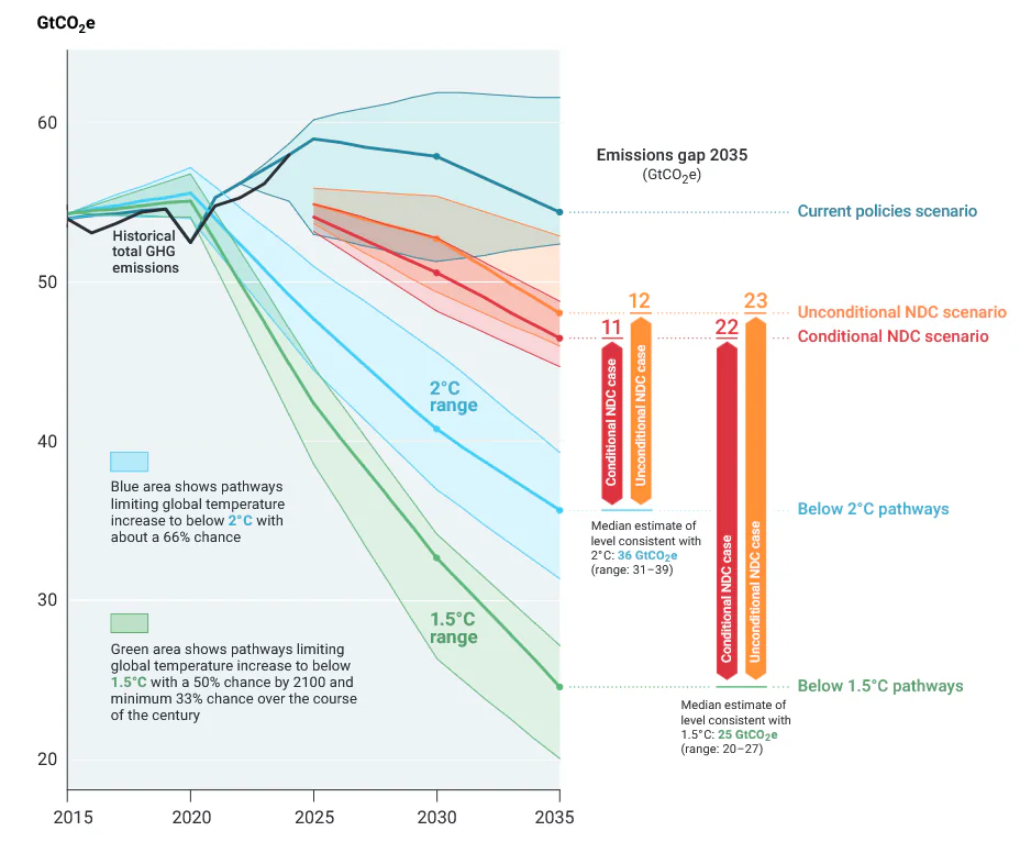 Źródło: UNEP Emissions Gap Report 2025.