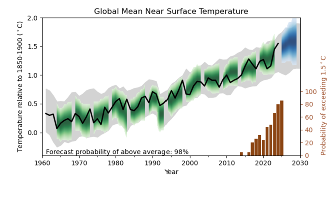 Źródło: WMO Global Annual to Decadal Climate Update 2025-2029.